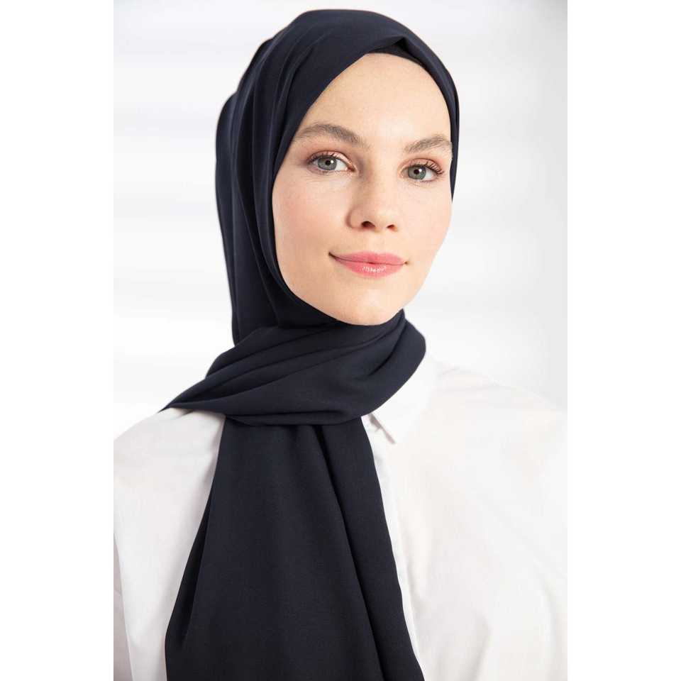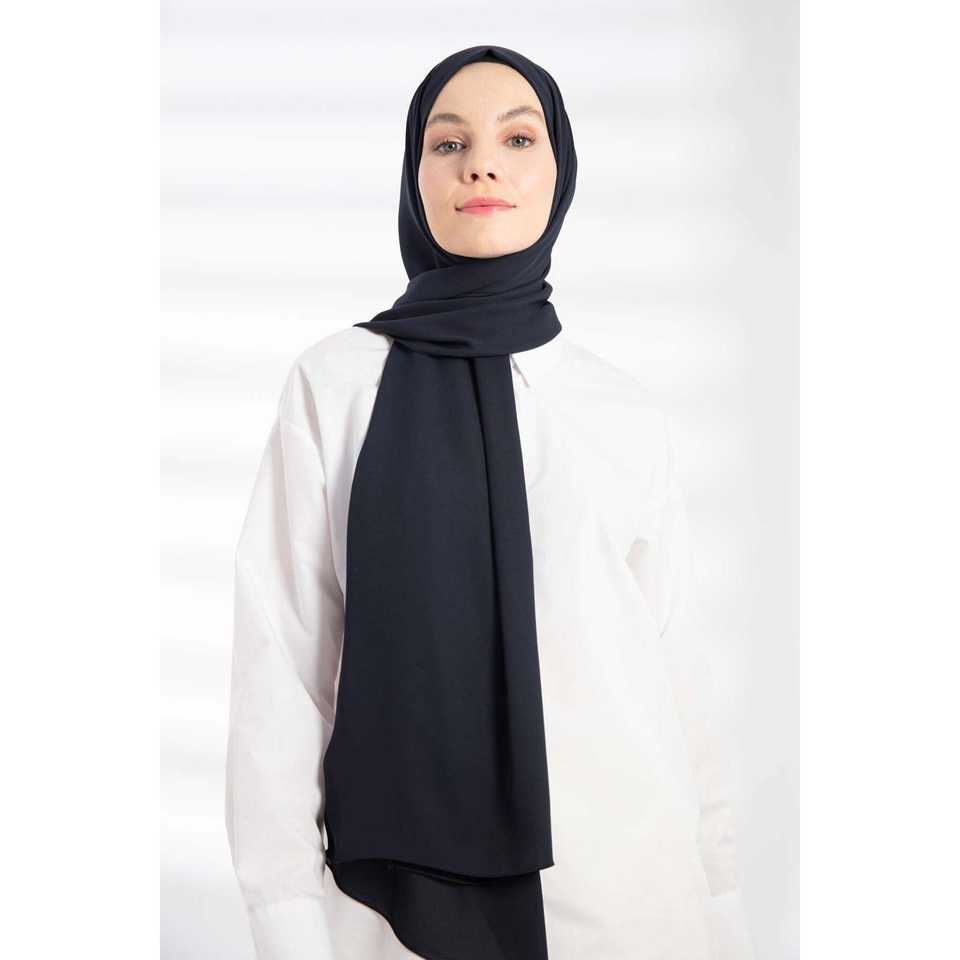 Navy Blue Premium Crepe Shawl Trendy Satin Chiffon Hijab Soft Ethnically Styled Long Winter Cover Custom Logo Printing