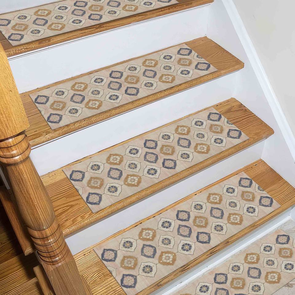 Navy Blue Printed Rug, Boho Ethnic Step Rug, Modern Nursery Bath Rug