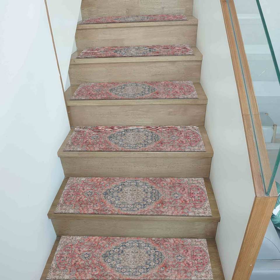 Navy Blue Printed Rug - Ethnic Step Rug, Oushak Rug, Modern Rug