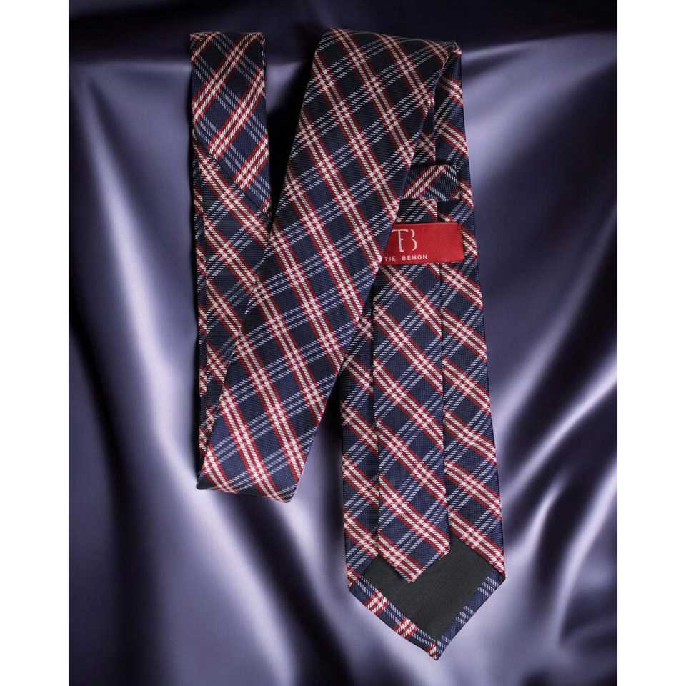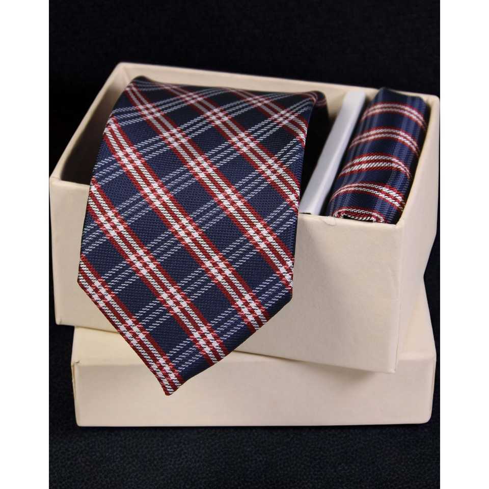 Navy Blue & Red Tartan Microsilk Plaid Tie & Pocket Square Set Premium Men's Shirt Accessory Set