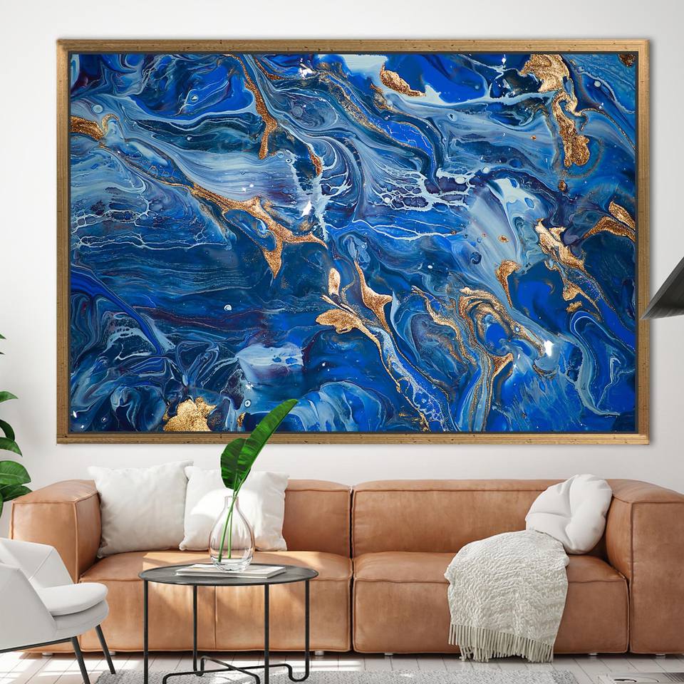 Navy Blue Shimmery Modern Abstract Canvas Print - Luxury Wall Art,1P:Gold Framed