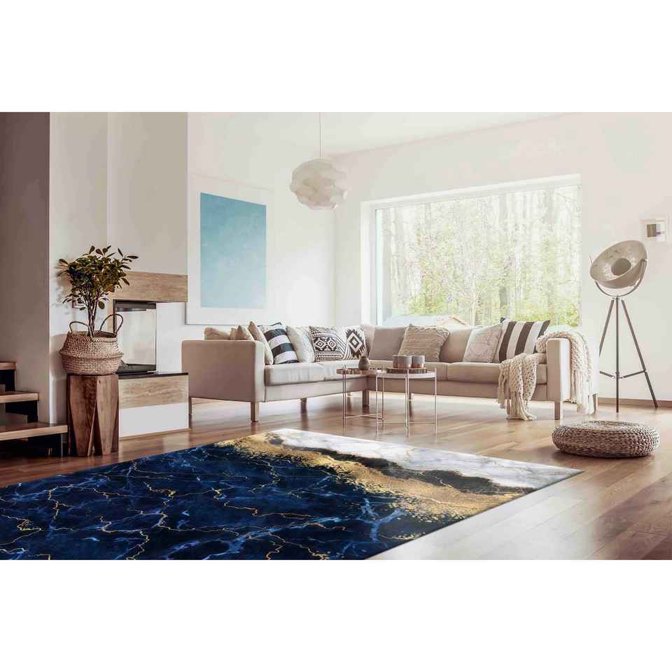 Navy Blue and White Printed Rug - Modern Home Decor,With Pile Soft Rug