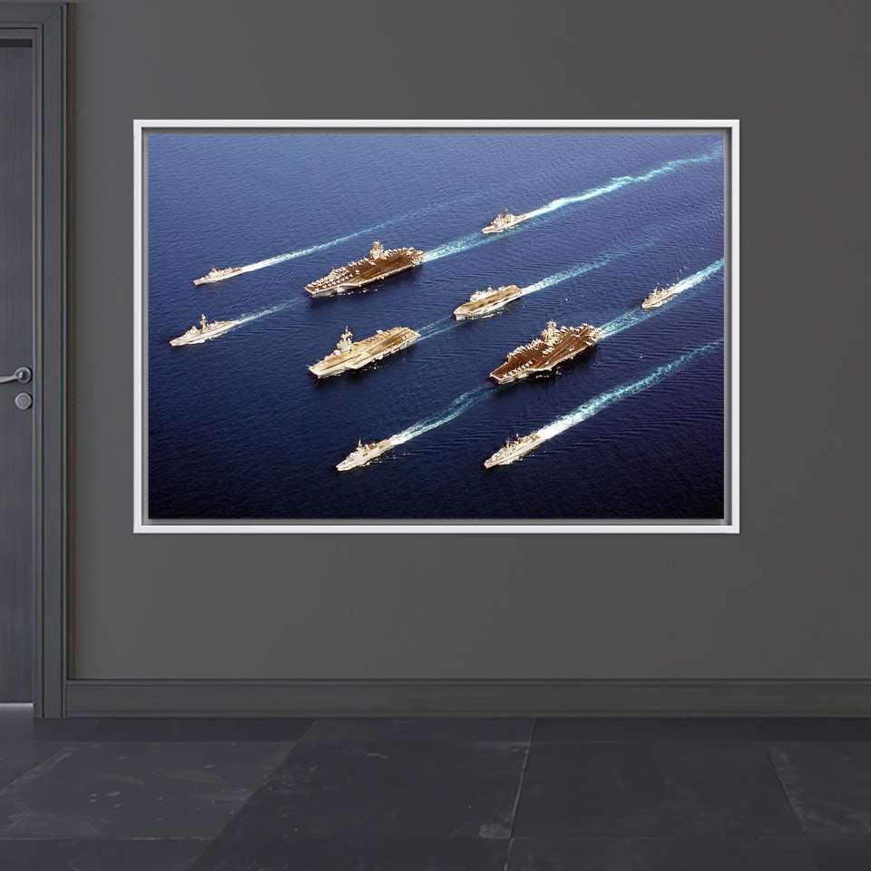 Navy Fleet Canvas Wall Art: Military Battleship Office Print,1P:White Framed