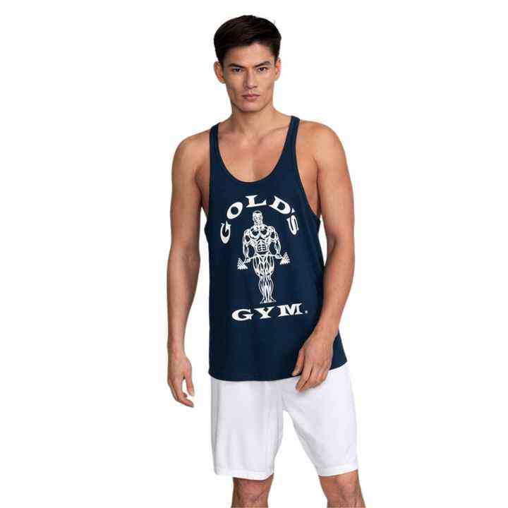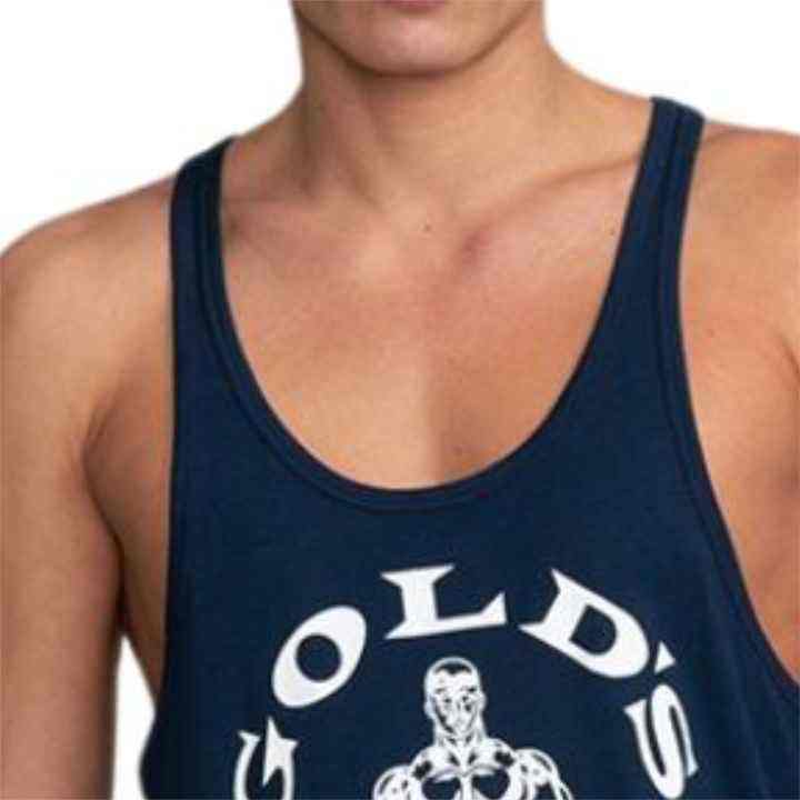 Navy Men's Organic Cotton Gym Vest Stringer Tank Top for Workout Muscle Fit Training Casual Knitted Sleeveless Workout Shirt
