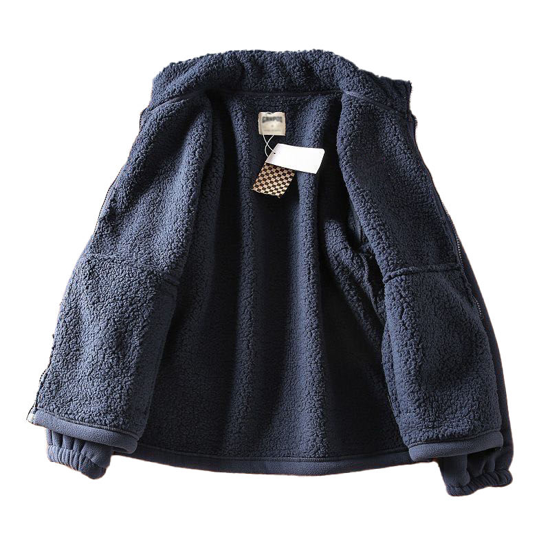 Navy Sherpa Bonded Fleece Jackets for Men, extra Warm Double Fleece Jacket Men for Outdoor
