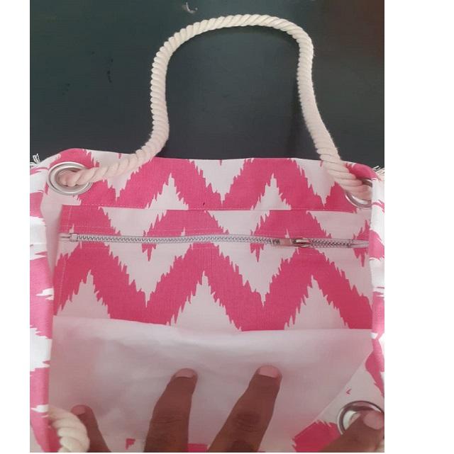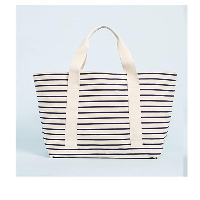 Navy Stripe Summer Women Beach Canvas With Rope Handle Strap Recycled Gots Certified Eco Friendly 100% Natural Cotton Cotton Bag