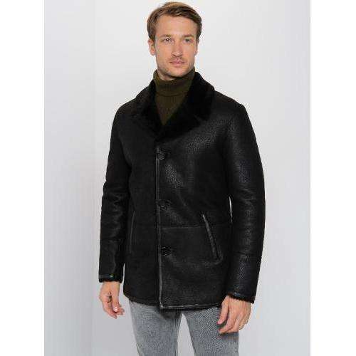 Leather Jacket – Black Croc-Embossed Shearling for Men, Wool-Lined