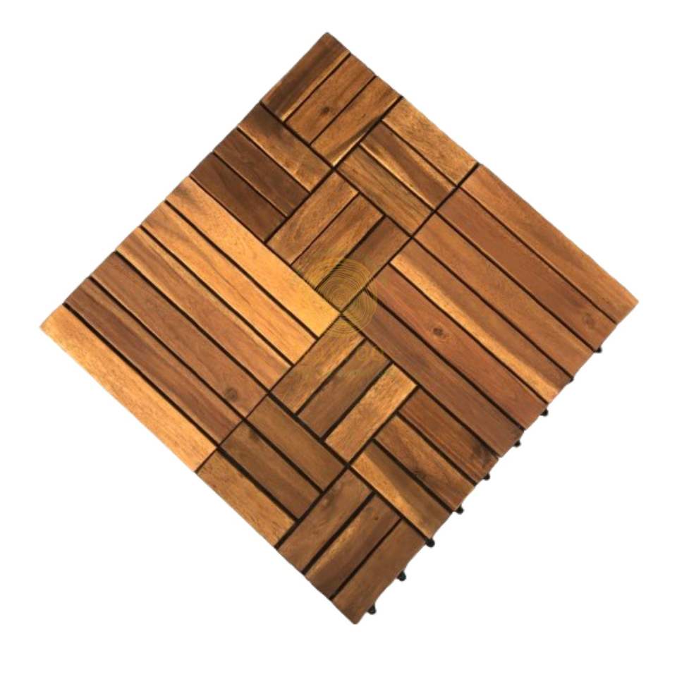 Nawoo Modern Design ACacia Deck Tiles Indoor/Outdoor DIY Interlocking Flooring Easy Install 12 Slats 24 mm Thick Wood Tiles