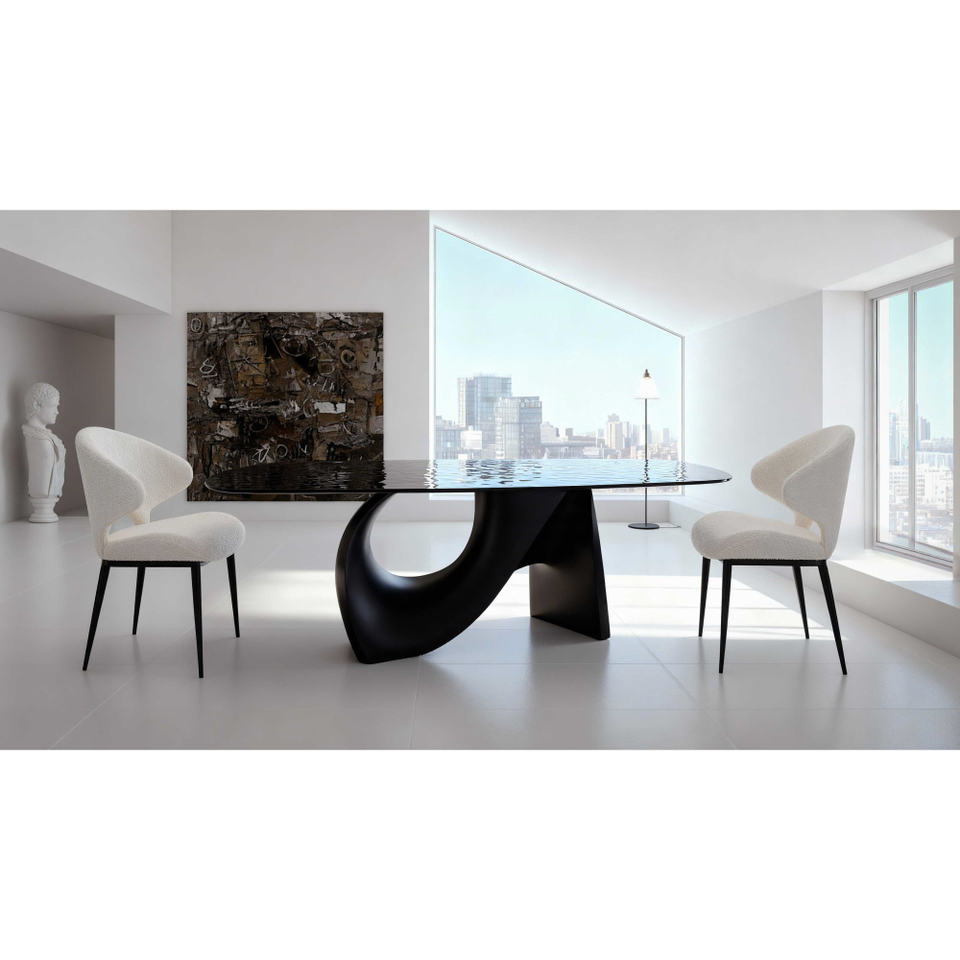 Nebula Dining Table Set Elegant Modern Design with Extendable Wavy Tempered Glass Top Wood Material
