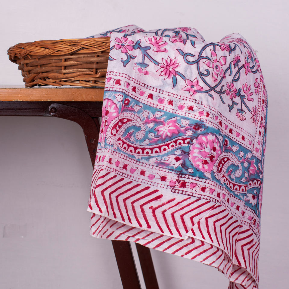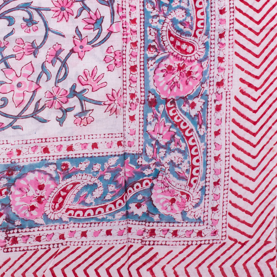Indian Handmade Women's Long Sarong White Cotton Floral Block Printed Neckerchief Wraparound Plain Style Scarf Hat Glove Sets
