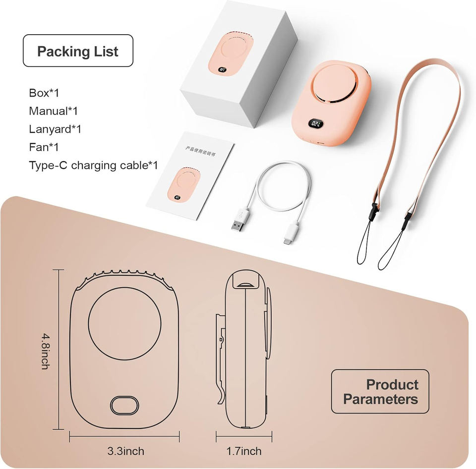 Necklace Fan 2000mah Battery Air Cooler Mini Fan Portable Rechargeable Bladeless Waist Hanging Ventilation Fans