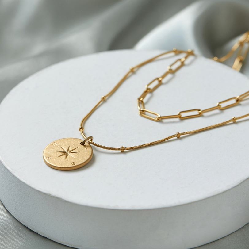 Necklace Manafactuar Custom logo Non Tarnish Waterproof Stainless Steel 18k Gold Plated Double Necklace Design for Women