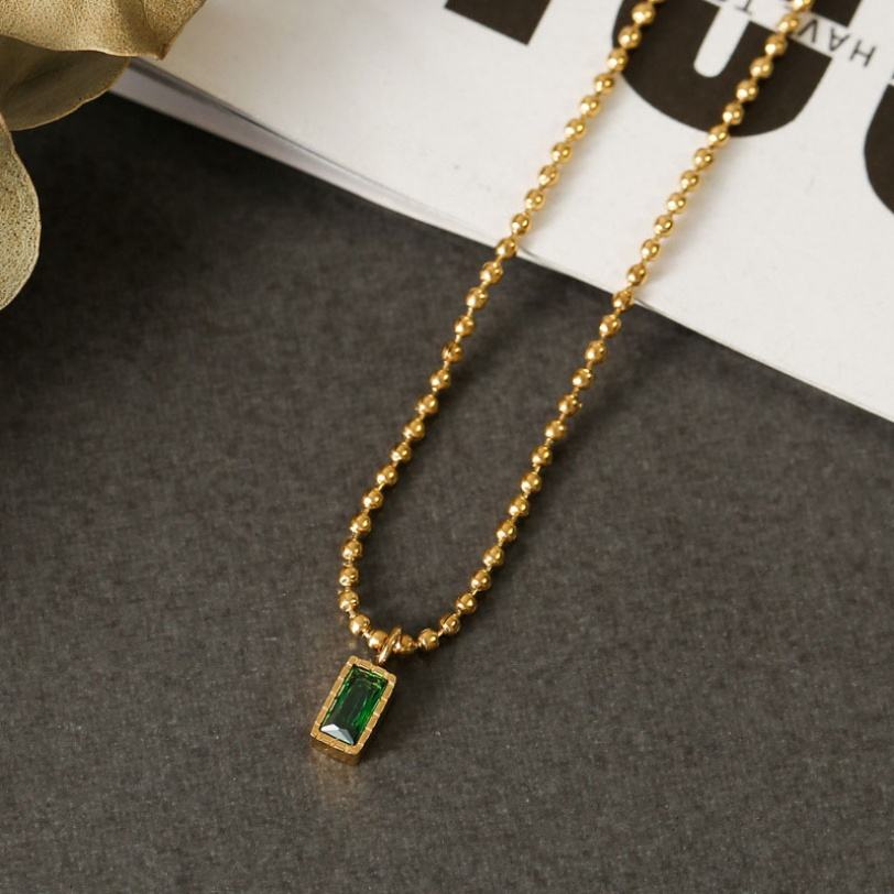 Necklace Manafactuar Custom logo Non Tarnish Waterproof Stainless Steel 18k Gold Plated Emerald Zircon Necklace for Women