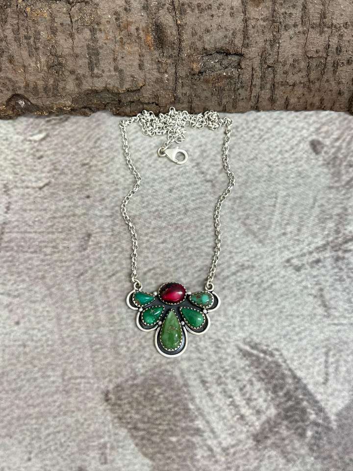 Necklace for Women Natural Luxury Sonara Gold Turquoise Pear Cut Gemstone 925 Sterling Silver Cluster Chain Statement Necklace