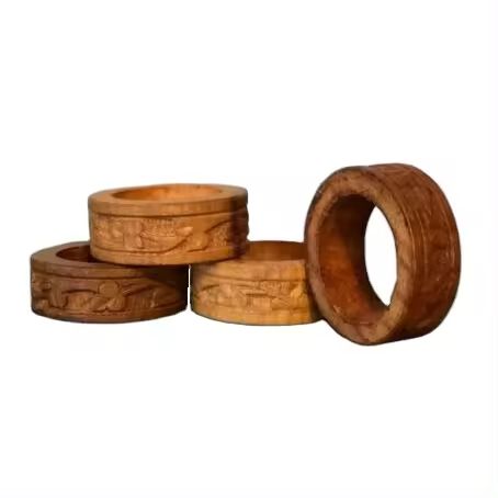 Neem Wooden Napkin Ring Holder Square Shape Set Of 2 Pcs Color Of Brown For Multipurpose Wedding Party Decorative
