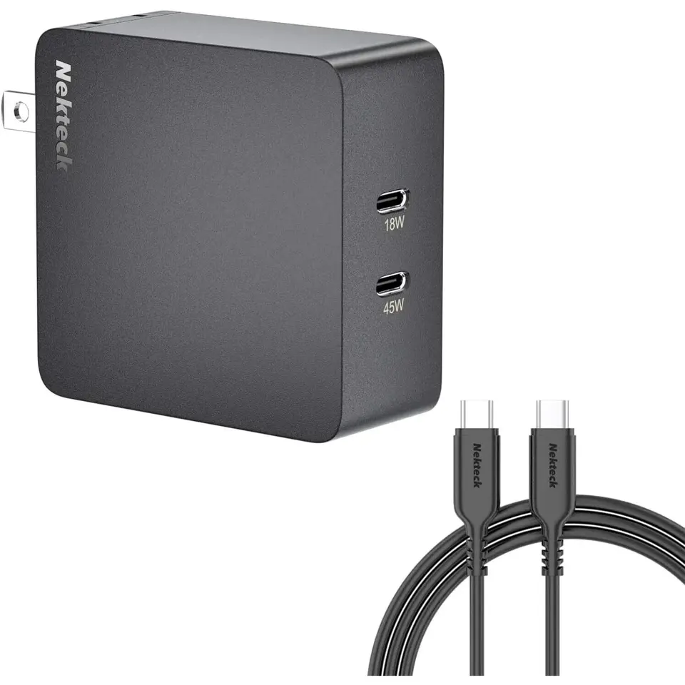 Nekteck 63W USB C Wall Charger 45W Power Delivery Foldable Plug EU AC Power Adapter SCP Short Circuit Charging for Devices