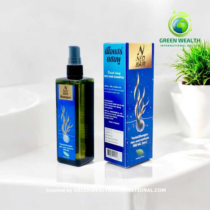 Neo Hair Shampoo Greenwealth Thailand 160ml Gel Form Organic Herbal Formula for Daily Use for Dry Damaged Hair Growth for Adults