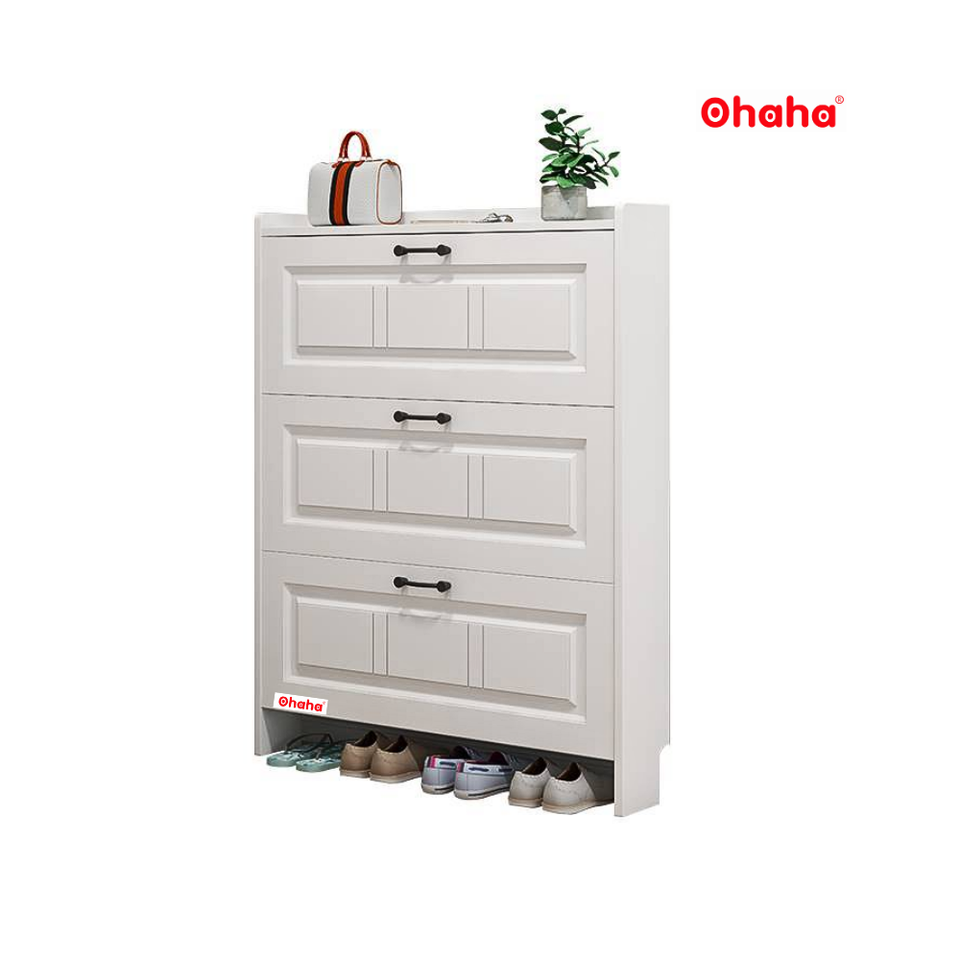 Neoclassical Style Smart Shoe Cabinet Elegant Storage with Carved Details Elegant Form with Hidden Storage Shelves