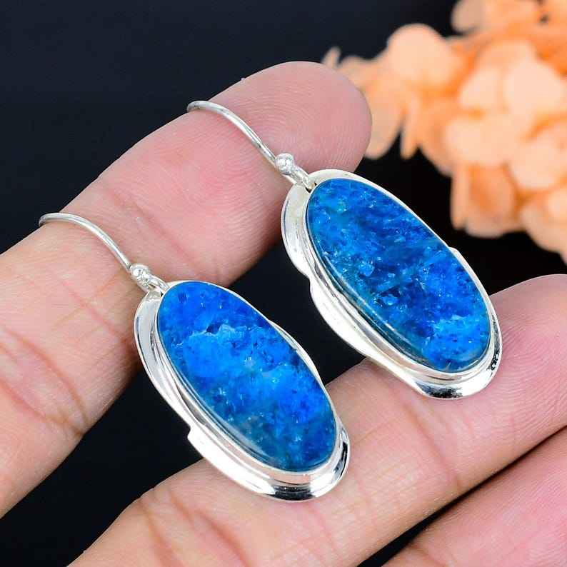 Blue Apatite 925 Made Sliver Earrings Blue Apatite Stones