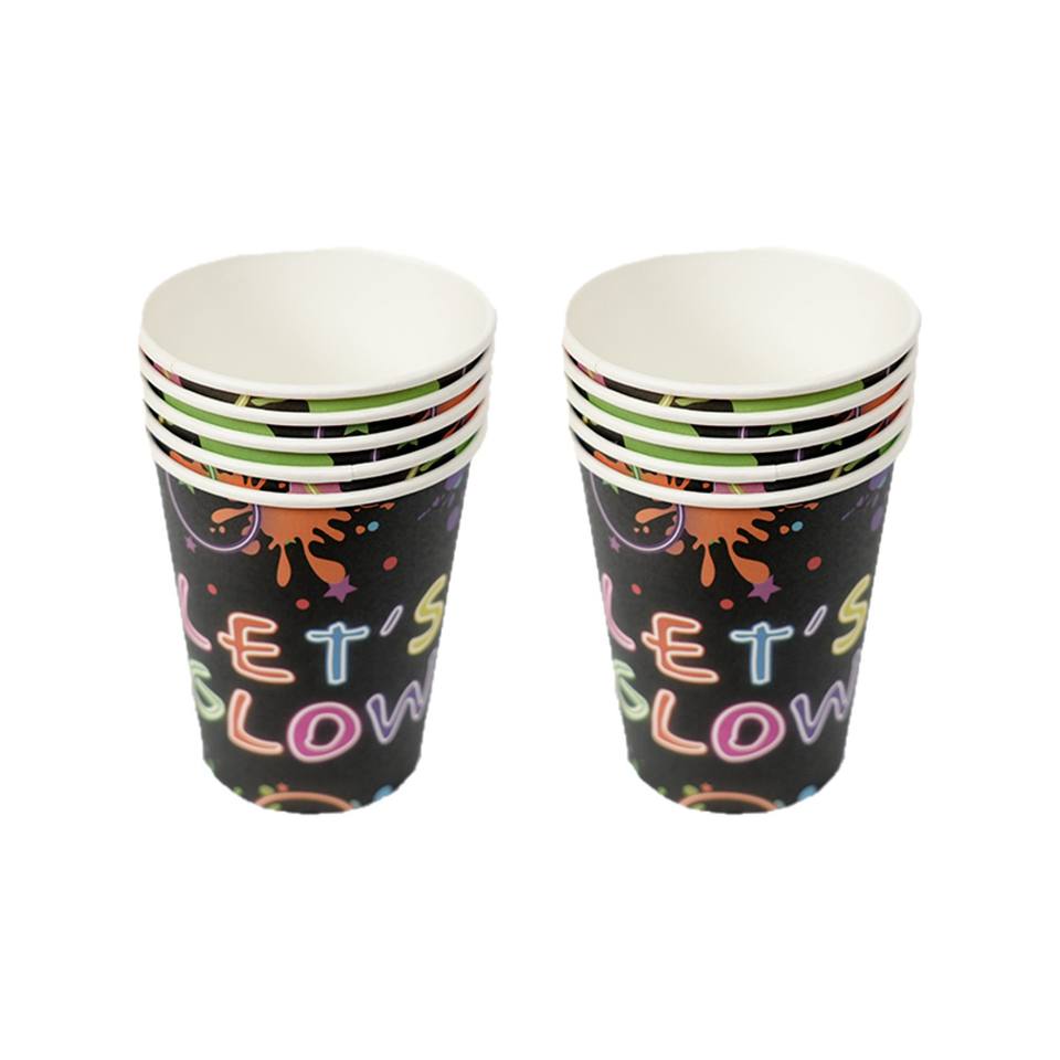 Neon Glow in Dark 4 Color Cartoon Birthday Party Supplies Set Blacklight Tableware Kit Plates Cups Napkins Cutlery Tablecloth