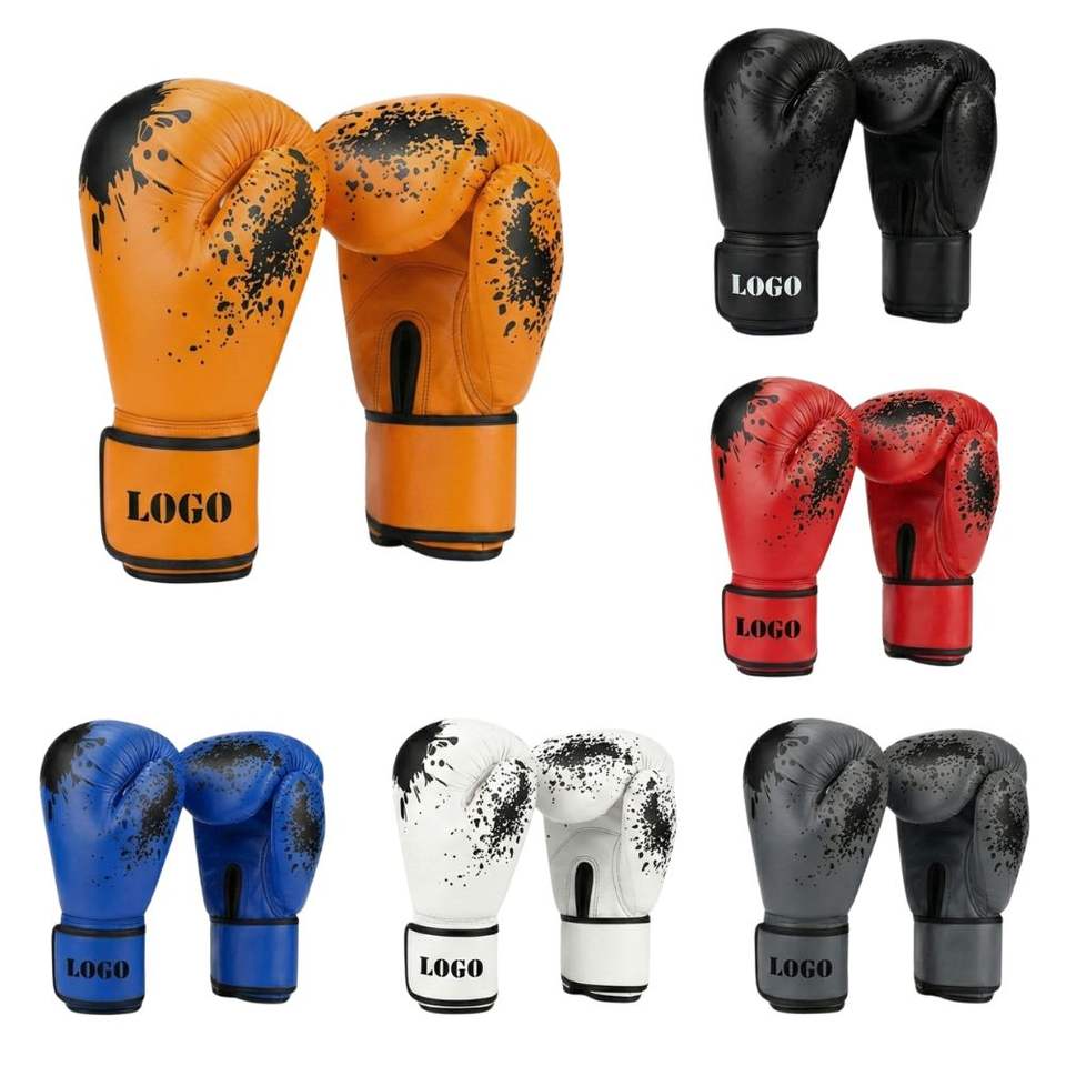 Neon Green Synthetic Leather Boxing Gloves Hand Grips Black Splash Pattern Custom Logo High Visibility Training Mitts