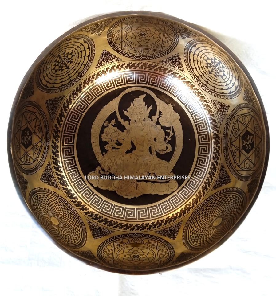 Nepal Made Tibetan Handmade Brass Singing Bowls Feng Shui Style Special Art Carved Metalware