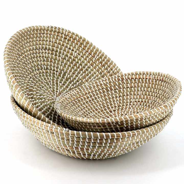 Nested raffia straw bowl set eco friendly woven seagrass shallow basket bowls cheap price from Vietnam