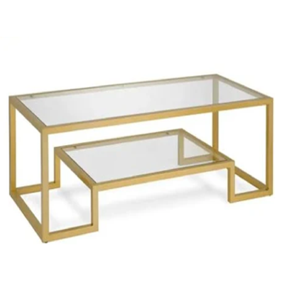 Nesting Square Coffee Tables, featuring white marble tops and gold metal frames with geometric leg designs, at wholesale prices