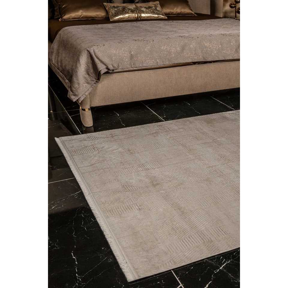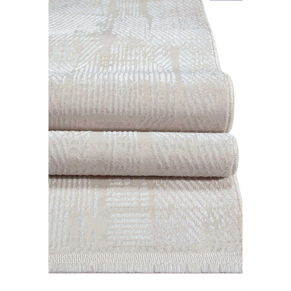 Netline Home Depot Cream Modern Velvet KD003 100% Micro Polyester Non-Shed Easy-Clean Durable Bedroom Area Rug & Set