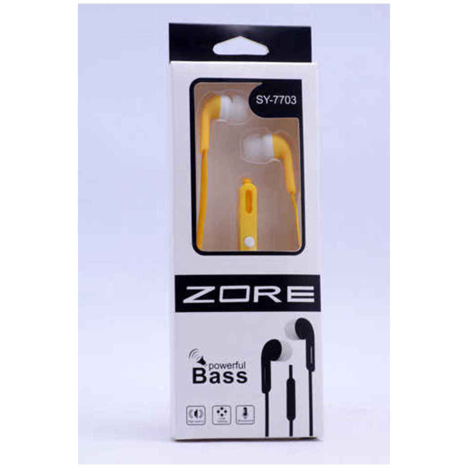 Netzy Zore SY-7703 Wired Stereo In-Ear Headphones Yellow Waterproof Sports Earbuds with LED Battery Indicator and Microphone