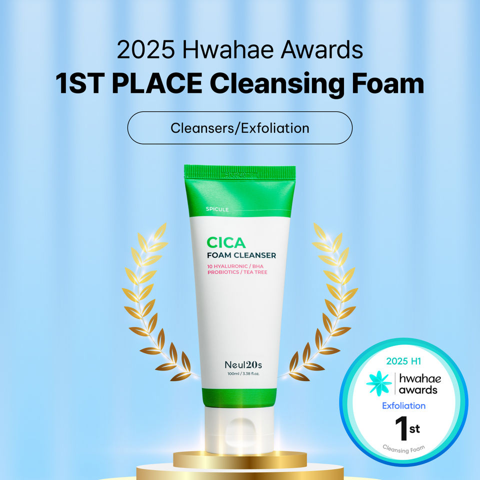 Neul20s Organic Korean Skincare Face Wash 100ml Spicule Cica Foam Cleanser for Sensitive Skin Green Tea Herbal Ingredients