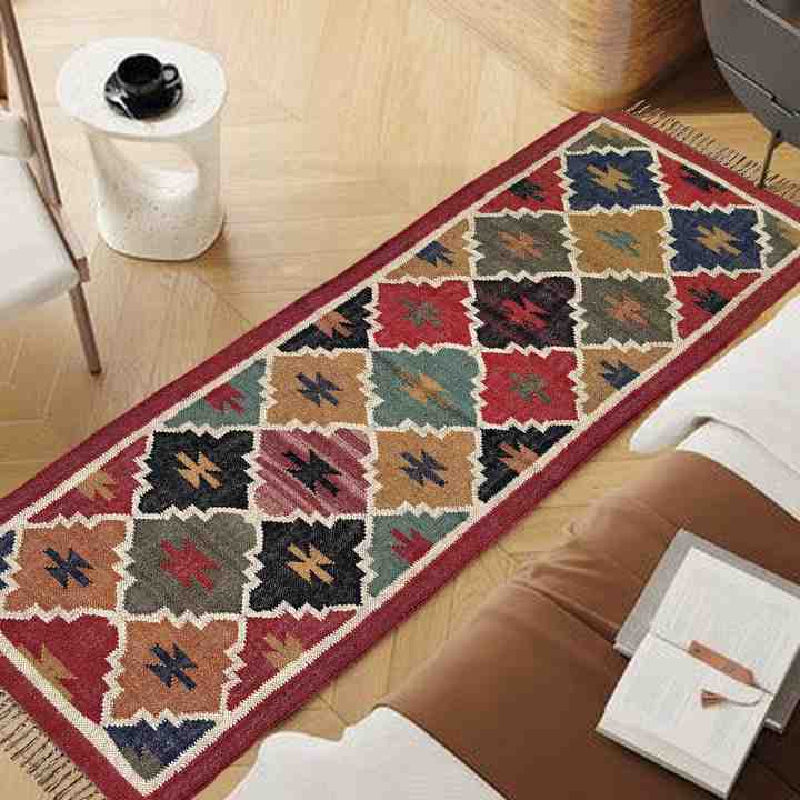 Neutral Earthy Tones Hand Woven Jute-Woolen Kilim Rugs for Living Room Bedroom & Study