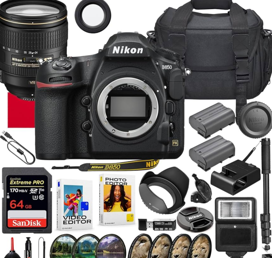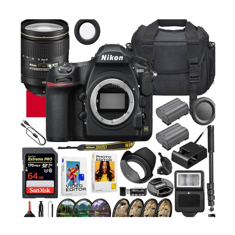 New 100% BEST QUALITY D850 FX D7500 DSLR Camera with 24-120mm F/4G AF-S ED VR Lens+ 64GB Pro With Extra Accessories