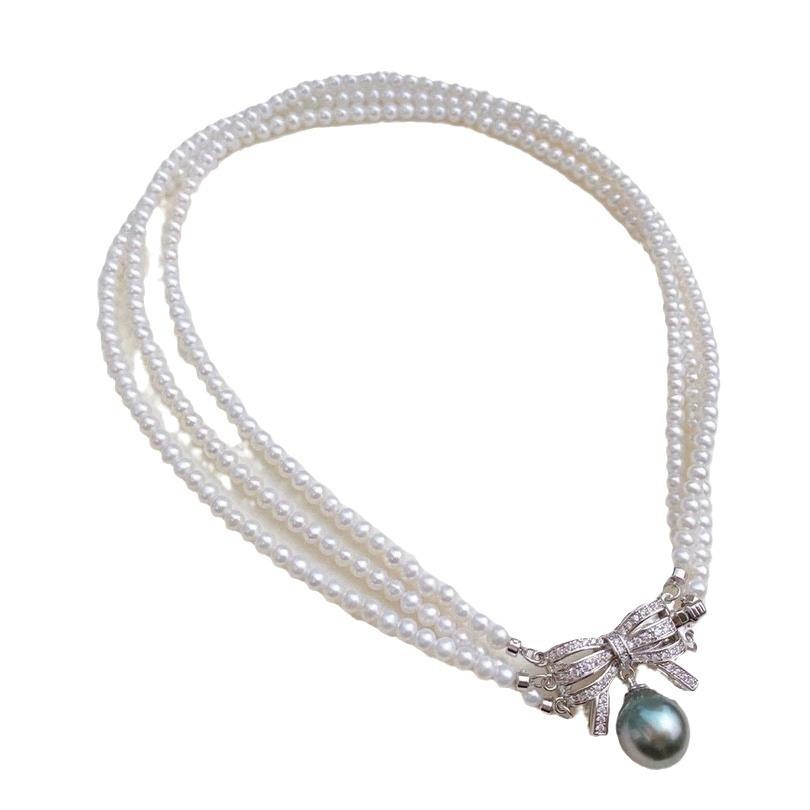 New 12-13mm Natural Black Pearl Ink Green Flawless Pure Silver Sunflower Wenchi China Classic Versatile Fine Choker Necklace
