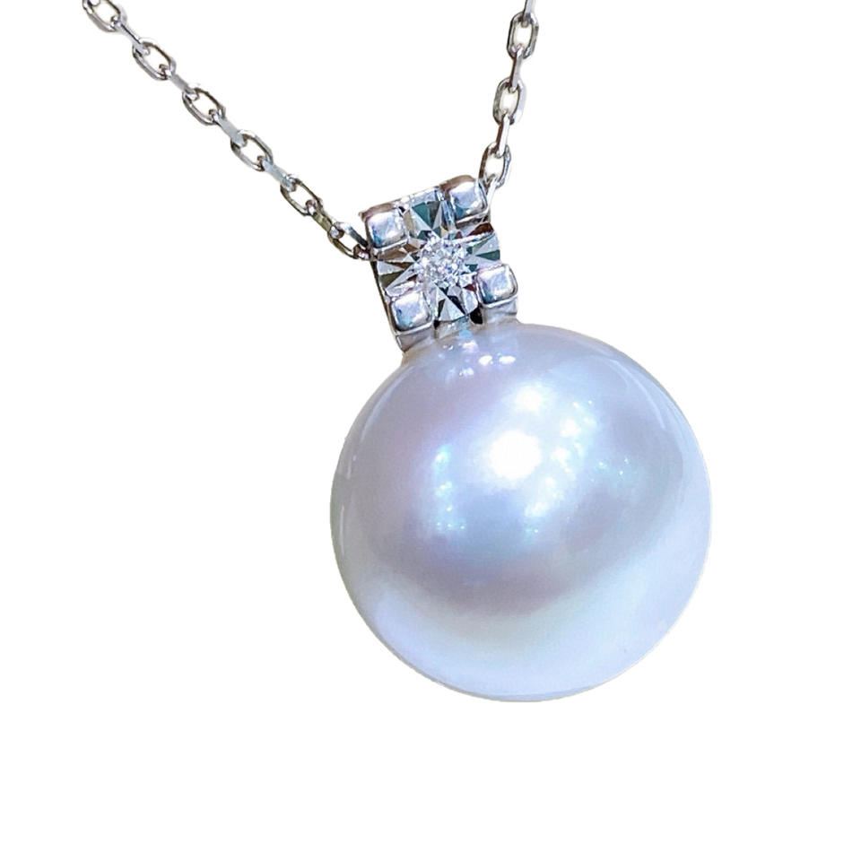 New 13-14mm Natural Gold Bead Pendant with T-shaped Diamond Butterfly Design Round Slightly Flawed Comes with Silver Necklace