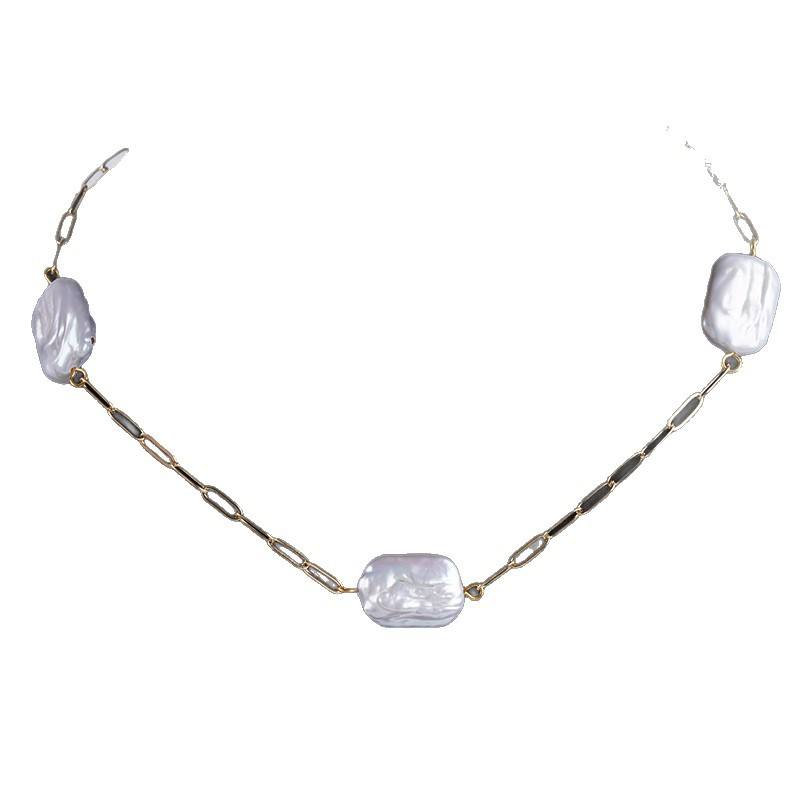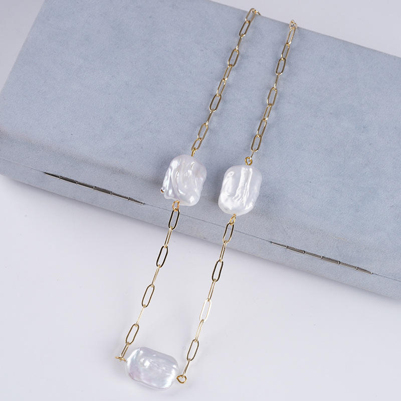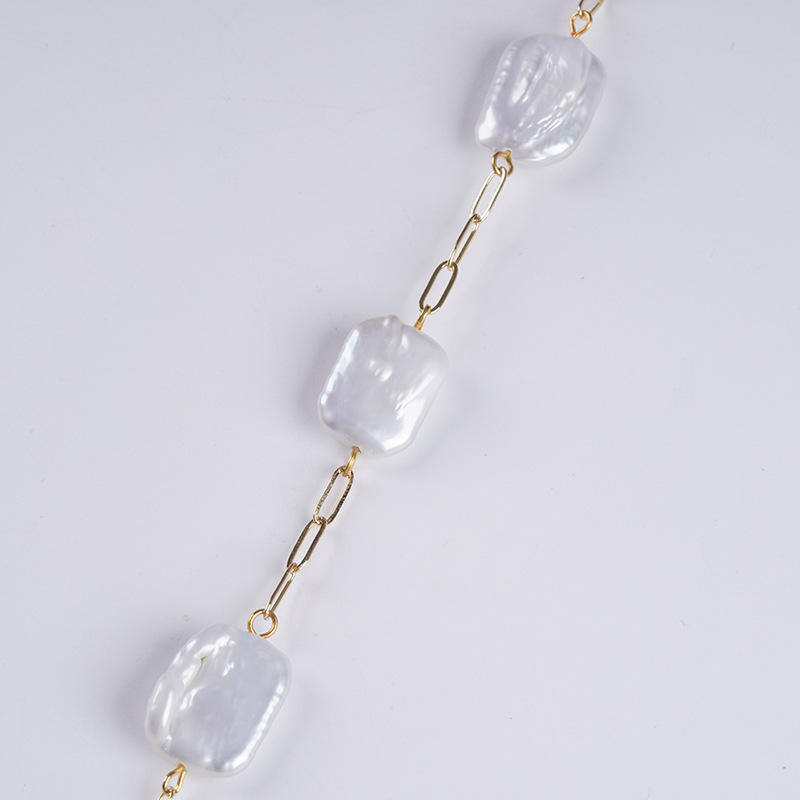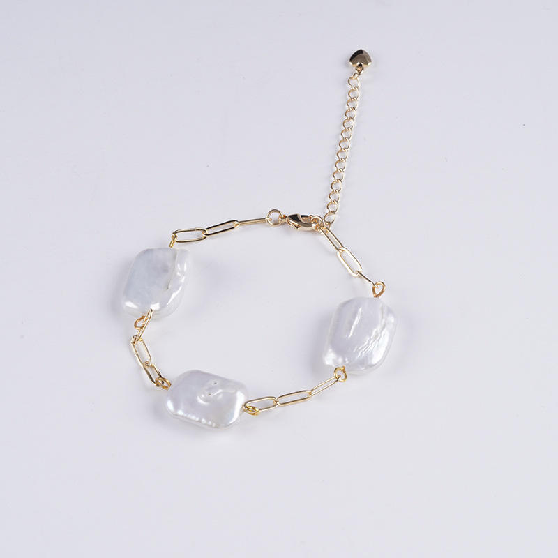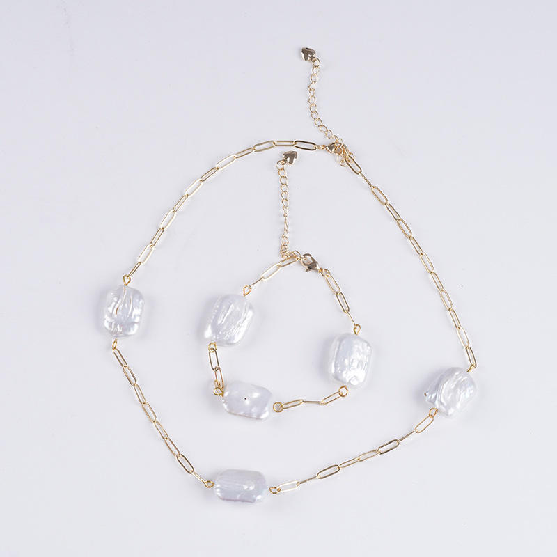 New 14-16mm Natural Pearl White Baroque Square Bracelet Adjustable Buckle Fashion Jewelry Set for European and American Style