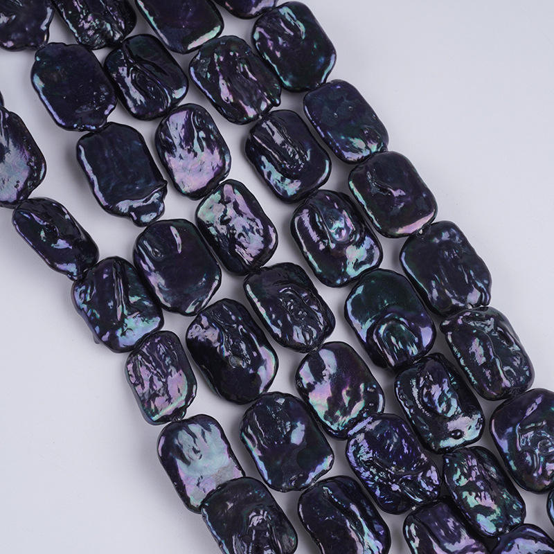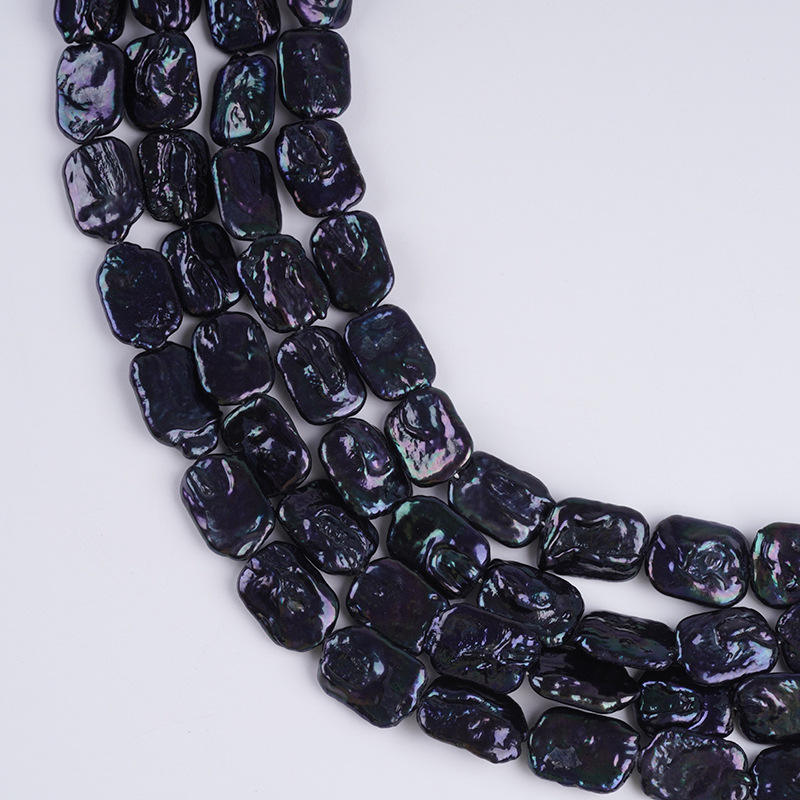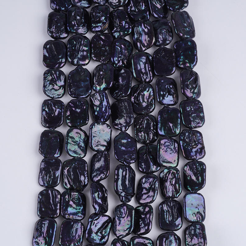 New 14*19mm Black Rectangular Freshwater Pearl Loose Natural Baroque Shape for DIY Necklace Bracelet Material