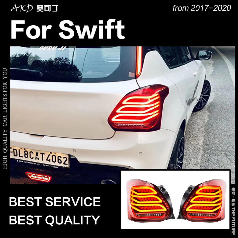 New 17-20 Year Suzuki Swift LED Taillights DRL Water Turn Signal Lights Red Lens Yellow Light Color ABS Material 12V Voltage