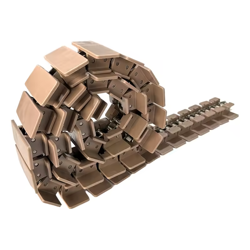 New 1873T Flat Top Leaf Chain with Plastic Link Plates for Turning Conveyors in Manufacturing Plants