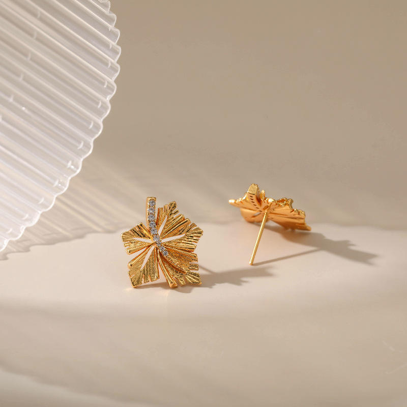 New 18K Gold Geometric Mini Earrings Creative Zircon Ins Style Fashion Leaf Studs Stainless Steel Jewelry Gold Plating for Women