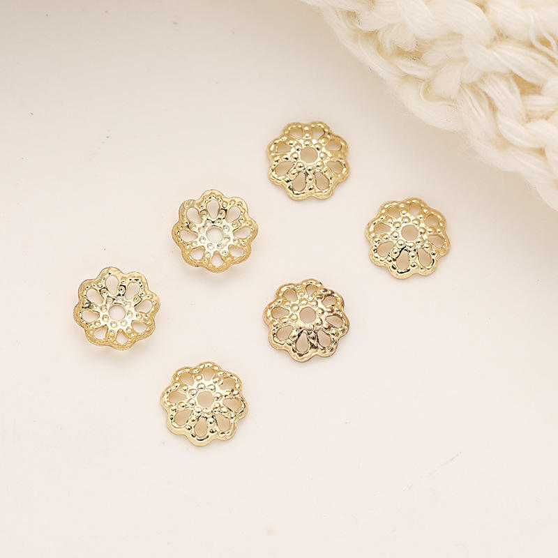 New 18k Gold Bag High-Color Copper-Plated Real Gold Pattern Hollow Flower Stand DIY Beaded Spacer Bracelet Beads Jewelry Making