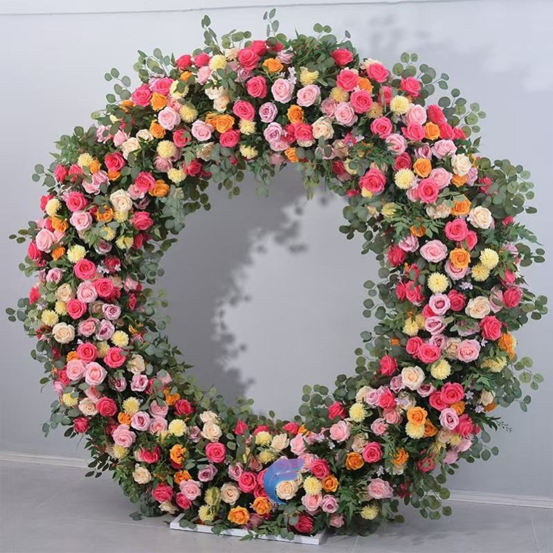 New 2-Meter Iron Ring Floral Wedding Stage Background Layout Arch Elegant Flower Lawn Wedding Decoration