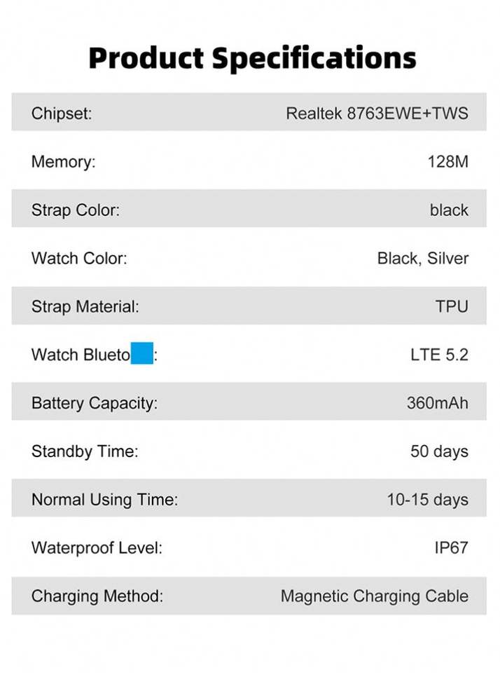 Function:Heart Rate Monitor, BT call, sport modes