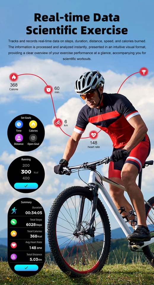 Alarm Clock, Remote Control, Countdown, Sleep Tracker, Fitness Tracker, Call Reminder, Answer Call, Push Message, Message Reminder, Dial Call, Heart Rate Tracker, Activity Tracker, Social Media Notifications, Calorie Tracker, Voice Call, Multisport Tracker, Music Player, Sedentary Reminder, Video Call, AI voice assistant