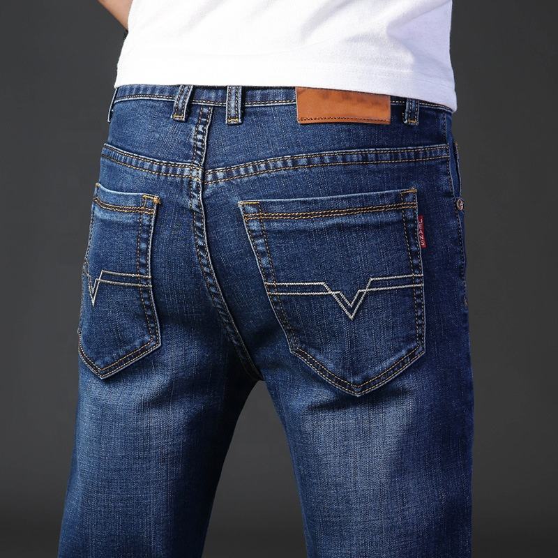 New 2021 Wholesale Customizable Men's Business Regular Straight-Leg High Waist Solid Pattern Washed Stretch Jeans Large Size
