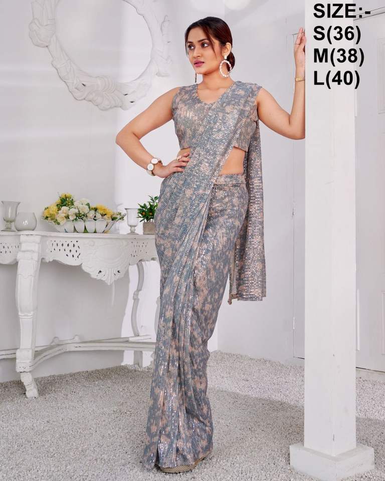 Type:Lycraa Sequence Work Ready To Wear Saree