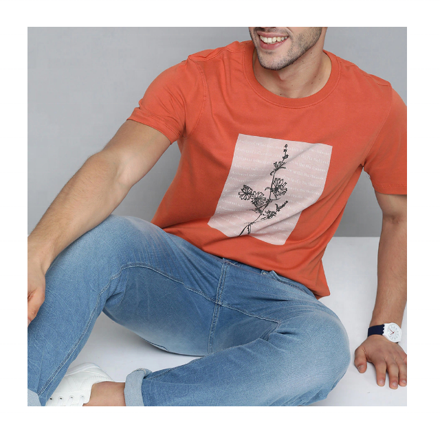 New 2022 Fashionable Plus Size Premium Quality Light Orange Color Men T Shirt Available in Cheap Factory Price