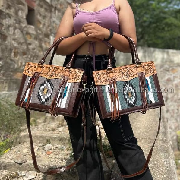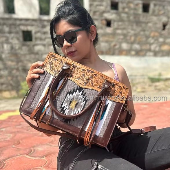 Hand Tooled Saddle Blanket Tote Bag