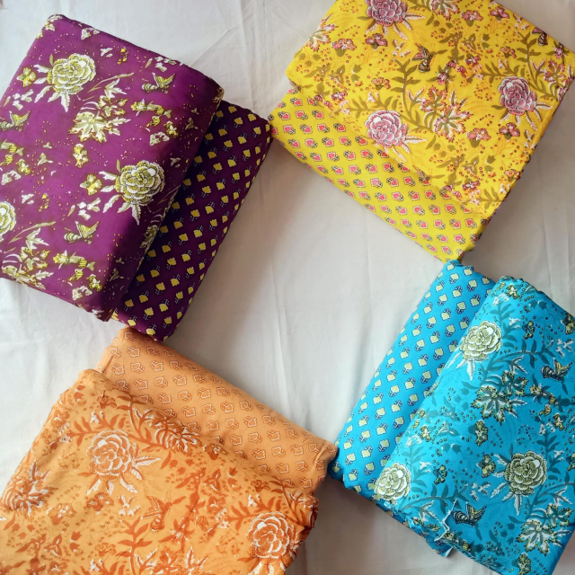 New 2024 Wholesale Fabric Indian Cloth Textile 100% Cotton Garment Fabric Material Floral Hand Block Screen Print Manufacturer