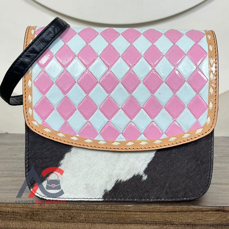 Hand Tooled Checkered Leather Crossbody Bag